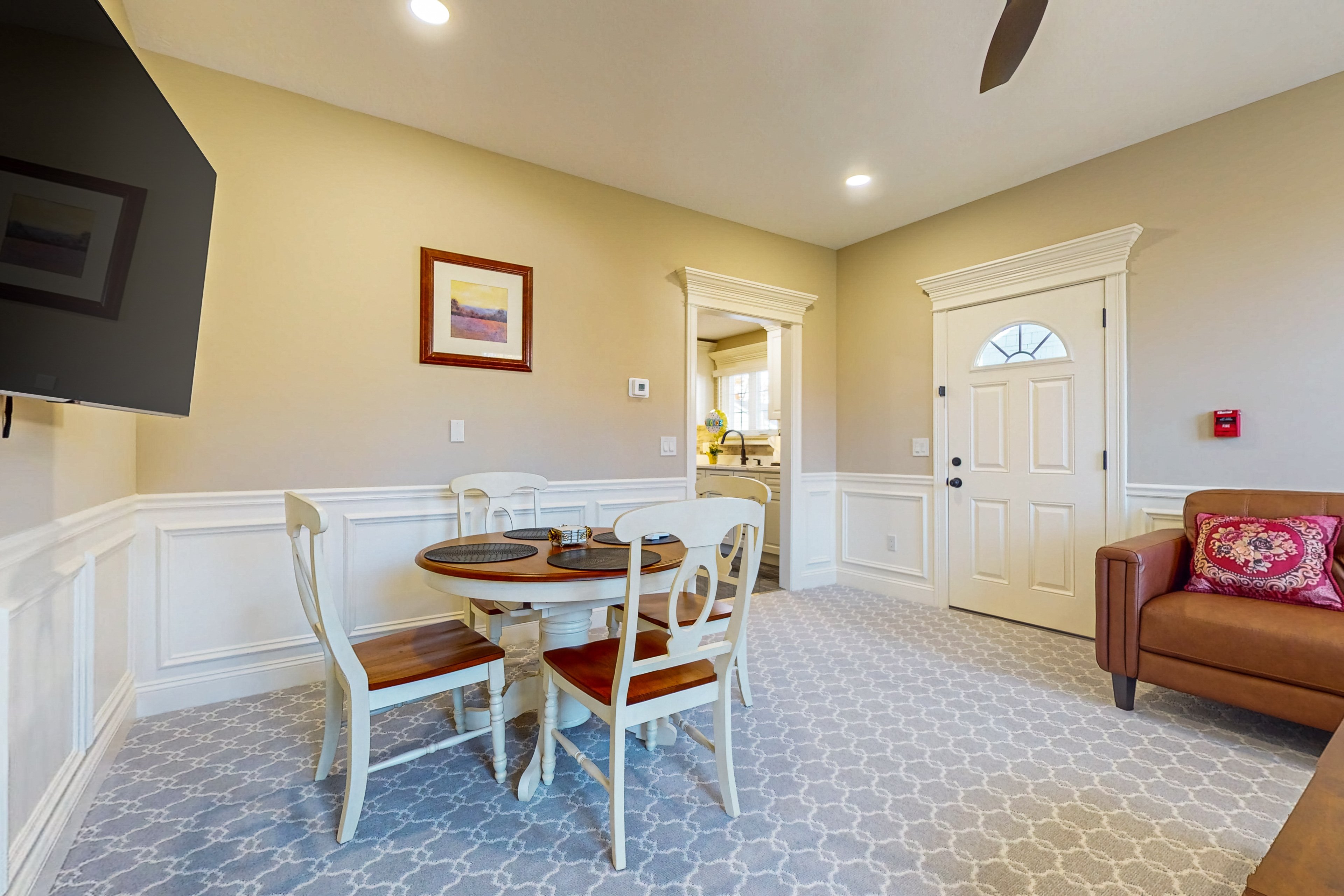 Conveniently located in Holyoke, MA, this modern apartment offers a comfortable stay with a shared lobby area at the entrance. Situated across the street from Holyoke Medical Center and near Interstate 91, this home is centrally positioned between the bustling cities of Springfield and Northampton. Safety is a top priority in this secure area, surrounded by various businesses and banks, providing peace of mind for guests.
